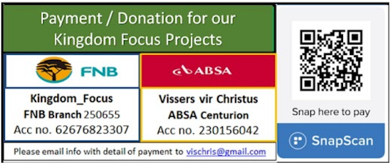 - or if you’re from South Africa you can make donations into the following account, again specifying for “National Leadership Development”. Lourens Laureti Standard Bank Savings Account number: 238403122 Branch: Cresta Skryf aan hulle… lourens_laureti@ntmpng.org marie_laureti@ntmpng.org WhatsApp Lourens by +675 7075 2452 *********************************************************** Let's Connect with KONINKRYKSFOKUS - KINGDOM FOCUS Watch Recommended Playlist – https://www.youtube.com/@koninkryksfokus7820/playlists * Besoek ons KoFie-Projek op Facebook - facebook.com/KoFie.project